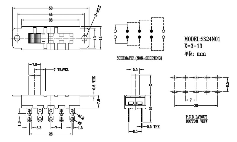 按鍵撥動開關技術參數: