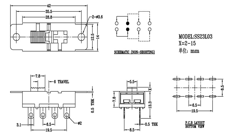 微型撥動開關技術參數: