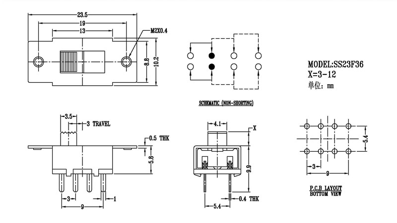 微型撥動開關技術參數: