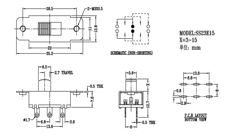 微型撥動開關技術參數: