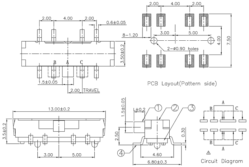 微型撥動(dòng)開關(guān)技術(shù)參數(shù):