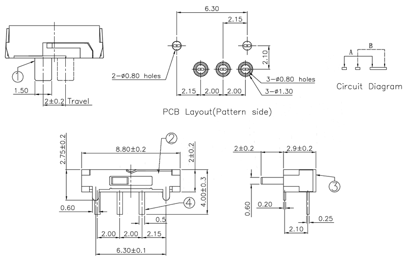 微型撥動開關技術參數: